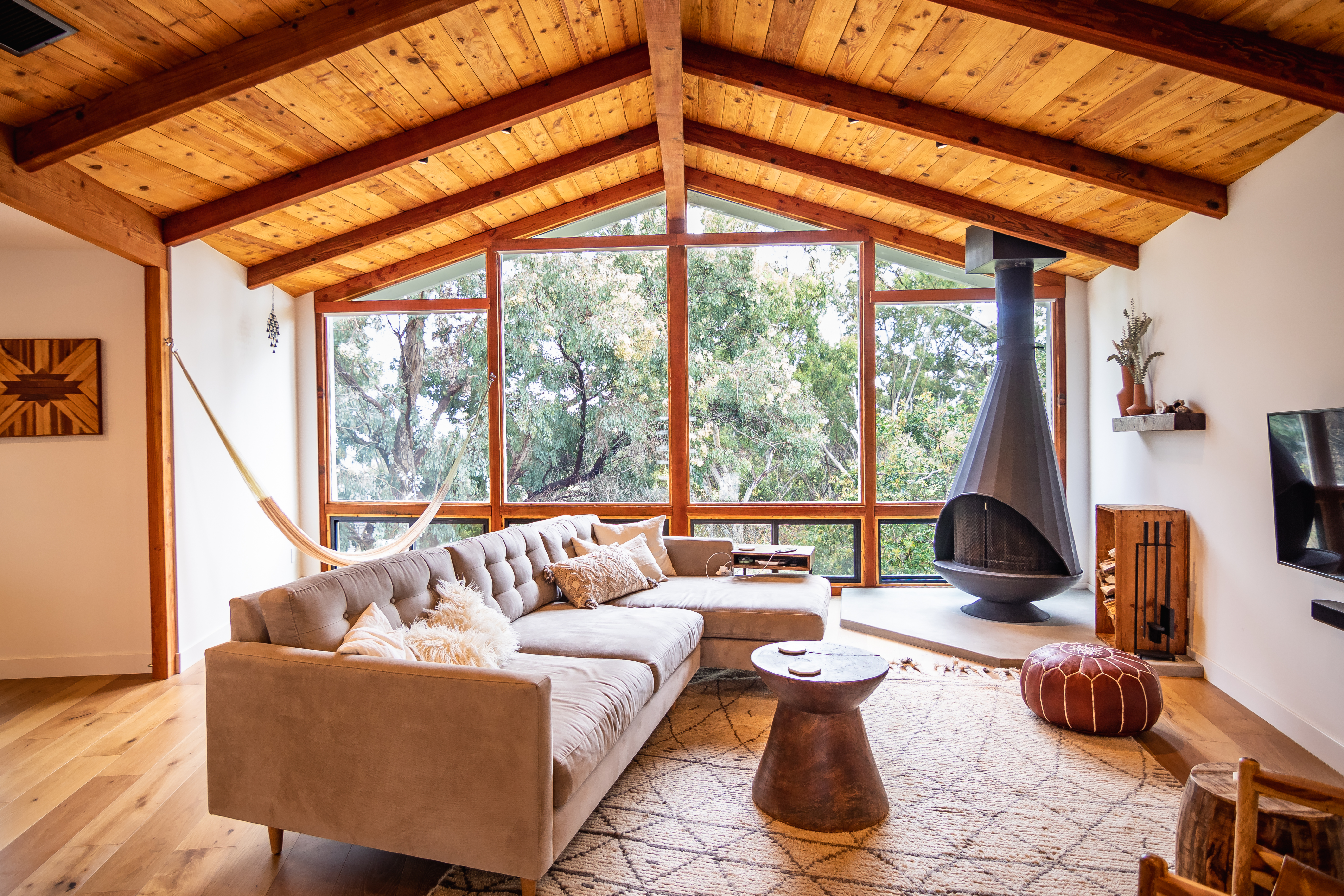This included sand blasting the high beam ceiling and staining new beams as well as existing wood. We installed new double pane low E UV glass in the west facing wall for the very large windows overlooking the canyon.