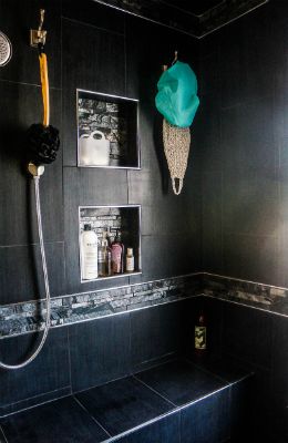 Eclectic contemporary style was desired by this client, with hints of classic influence. Highest quality fixtures and materials were utilized throughout. We took a bathroom that was original to the house, and turned it into a show piece with high aesthetic value and high function.
